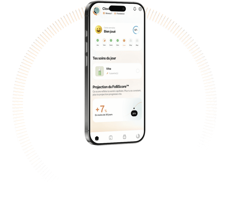 Chaque jour, vous ouvrez l’app. En moins de 3 minutes, vous savez exactement quoi faire. Vous enregistrez votre soin, suivez l’évolution de votre FolliScore™, et voyez l’impact de vos actions sur vos cheveux.